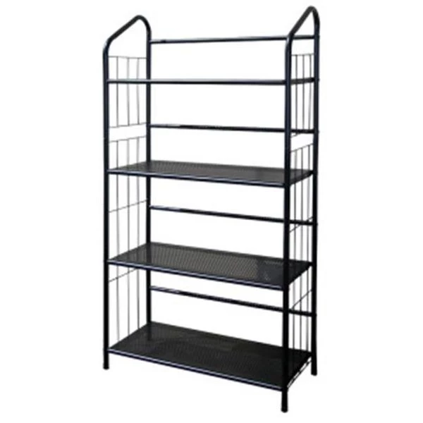 An open space bookshelf to showcase all your trophies and interests. Add your very own sense of design with these large open spaces that can store a variety of items.FeaturesAdd valuable bookshelf space to the office. living room or kid's room.4 tier Shelving unit.Made of Metal in Black finish.Easy assembly.Dimensions – 11 x 26 x 49 in.