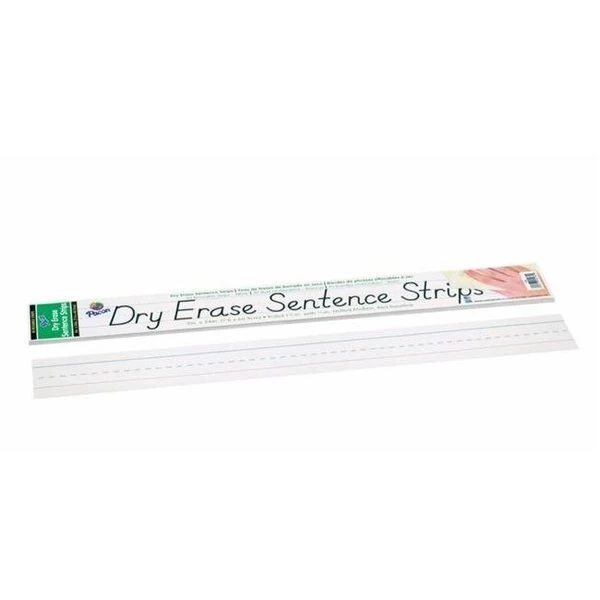 Pacon Dry Erase White Sentence Strip measures 3 x 24 in. and offers durability and teachers can use them again and again. Strip is ruled 1-1/2 in. with a red baseline and a 3/4 in. dotted midline on the dry erase side.