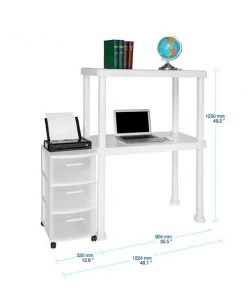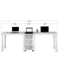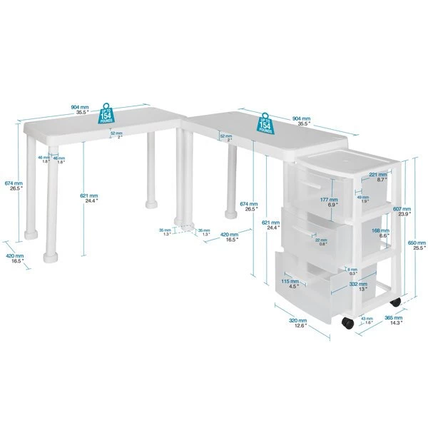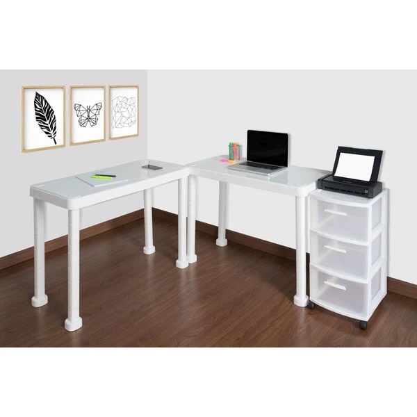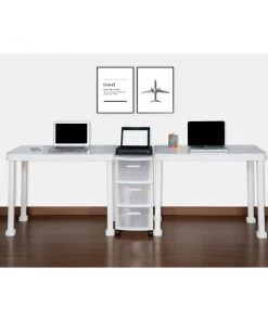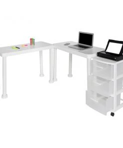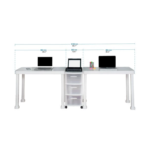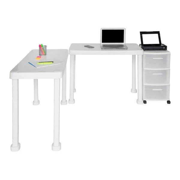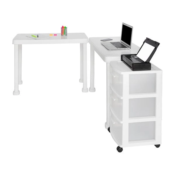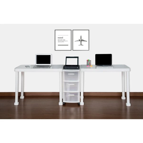 The Multi-Desk with Rolling Storage Cart by MQ® is finished in a rich White Polypropylene (PP) resin material. This set includes two (2) workspace tables and one (1) three (3) drawer rolling storage cart that are sturdy and easy to clean. It is ideal for any home or home office and can be set-up in a variety of configurations to accommodate your space, decor and use. Also available in expresso.