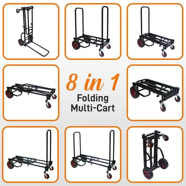 Features: – Easily Adjust to Various Load Sizes – R-Trac Wheels and Brakes – Transforms into 8 Different Shapes, Replacing 8 Cart Types – Carries Huge Amounts of Equipment – Foldable Cart for Easy Storage – Textured, Powder Coated Steel – Durable and Reduces Slippage During Transport – Can Handle Any Terrain, Gravel, Grass or Uneven Surfaces – Lightweight, Rugged and Ergonomically Efficient Design – Perfect for Musicians, Photographers, Offices, Warehouses, Deliveries and more What's in the Box: – Adjustable Equipment Cart Technical Specs: – Max. Load Capacity: Up to 200 lbs. – Construction Materials: Steel – Maximum Height w/out Wheels: 24" -inches – Main Frame Tubing: .75" and 1" Square Steel Tube – Axle Size: 0.75'' (19mm) – Wheels: 6" x 1.5" R-Trac Rear Wheels & 4" x 1" R-Trac Front Casters with Brake – Product Dimension (L x W x H): 25.24'' x 14.25'' x 24'' -inches