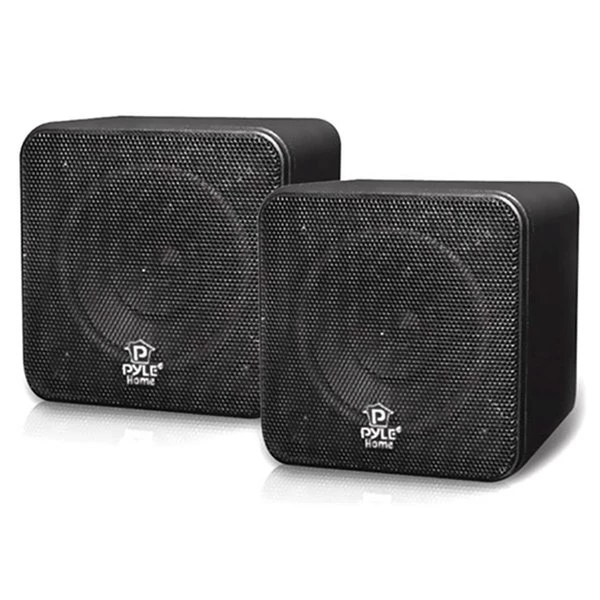 These black full range mini cube bookshelf speakers may look cute. but they pack a big punch. They're great for home theater systems or stereos. and they look sharp on tables or bookshelves. These speakers are powered by 4" paper cone drivers pushing 200 watts. delivering a frequency response of 80 Hz to 18 kHz. They're also video shielded to prevent damage to CRT monitors. When you're looking for power in a small package. look to these bookshelf speakers from Pyle Pro. FeaturesMini cube bookshelf speakerSpecificationsColor: BlackSize: 4"PMPO Output Power: 200WMinimum Frequency Response: 80 HzMaximum Frequency Response: 18 kHzImpedance: 8 Ohm