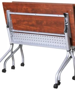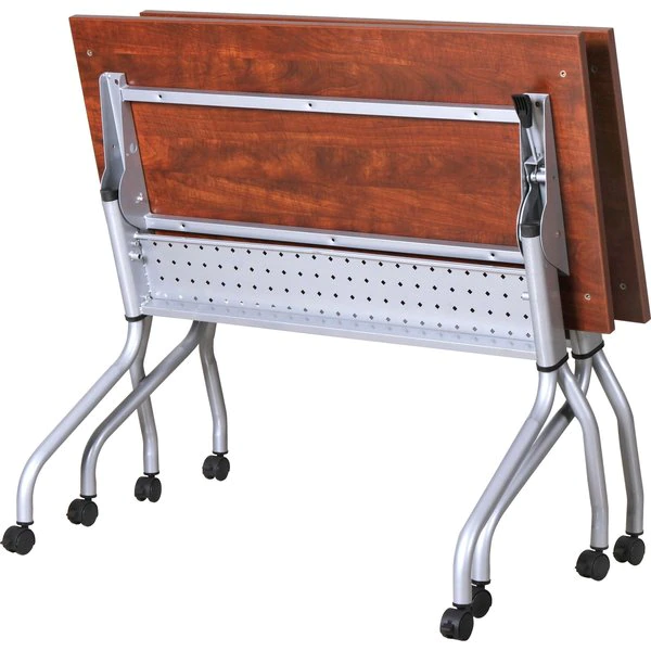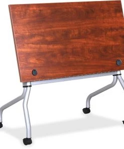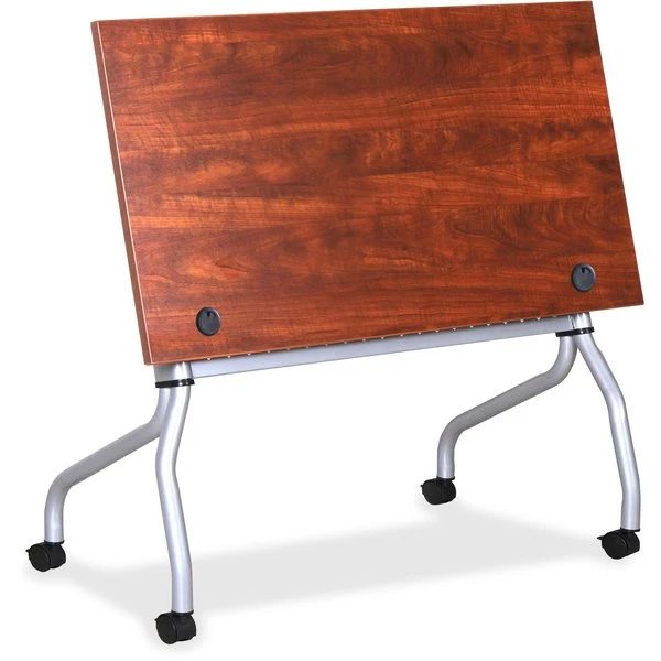 Rectangle Lorell Cherry Flip Top Training Table, 23.6 X 48 X 29.5, Melamine Top, Cherry