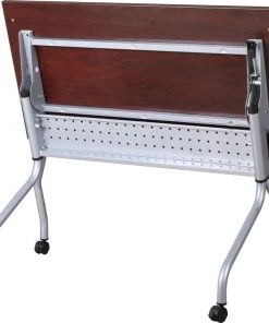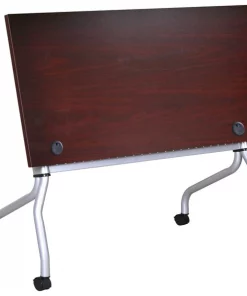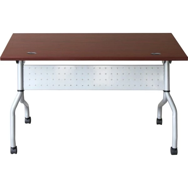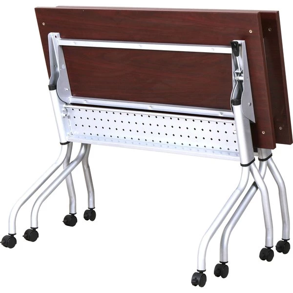 Rectangle Lorell Mahogany Flip Top Training Table, 23.6 X 48 X 29.5, Nylon Top, Mahogany