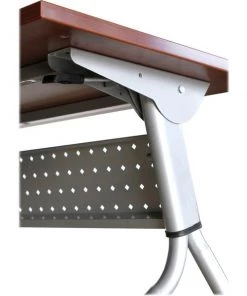 Versatile training table offers flexible configurations and convenient storage. Use individually or secure together into rows with a reliable metal connector (sold separately). Top flips up for easy storage without having to remove the connector. Top features a melamine surface with a 3mm PVC straight edge. Two grommets allow easy cord management. Four-leg, all-metal base features a one-way fold and modesty panel. Table rolls easily on four nylon casters with brakes.