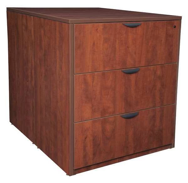Combination File Cabinet, Rectangular, Legacy Series, File Size Letter/Legal, Number of Shelves 2, Number of Drawers 3, Configuration (3) Full Suspension Lateral Drawers, Storage Cabinet, Overall Width 36 in, Overall Height 42 in, Overall Depth 46 in, Color Cherry, Material Laminated Commercial Board, Handle Metal Ergonomic Pull, Assembly Storage Cabinet and Top Required, Lateral File Fully Assembled, Standards ANSI/BIFMA