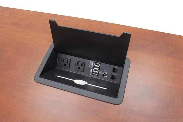 Conference Table, Modular, Legacy Series, Shape Race Track, Width 52 in, Height 29 in, Length 14 ft, Seats 14, Material Laminated Furniture Board, Tabletop Finish Mahogany, Base Finish Mahogany, Top Thickness 2 in, Surface Material Laminate, Frame Material Laminate, Weight Capacity 450 lb, Edge Type 3 mm Matching, Base Type (3) Legs, Slab Shapped, Assembly Required, Standards ANSI BIFMA, Carb Compliant