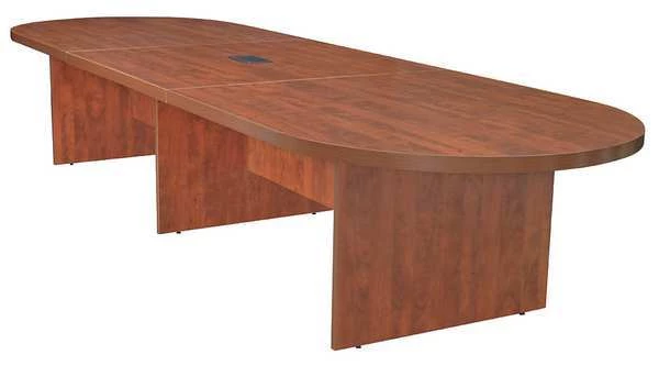 Conference Table, Modular, Legacy Series, Shape Race Track, Width 52 in, Height 29 in, Length 14 ft, Seats 14, Material Laminated Furniture Board, Tabletop Finish Cherry, Base Finish Cherry, Top Thickness 2 in, Surface Material Laminate, Frame Material Laminate, Weight Capacity 450 lb, Edge Type 3 mm Matching, Base Type (3) Legs, Slab Shapped, Assembly Required, Standards ANSI BIFMA, Carb Compliant