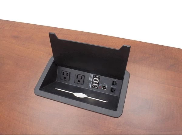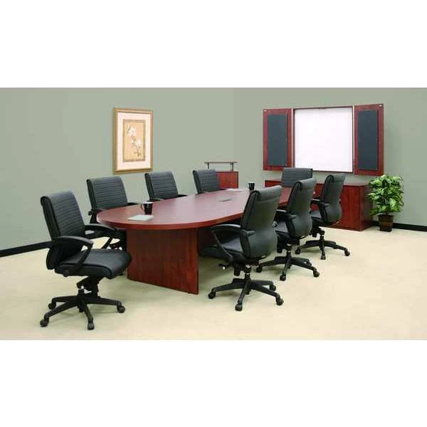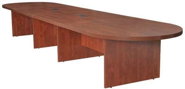 Conference Table, Modular, Legacy Series, Shape Race Track, Width 52 in, Height 29 in, Length 16 ft, Seats 14 to 16, Material Laminated Furniture Board, Tabletop Finish Cherry, Base Finish Cherry, Top Thickness 2 in, Surface Material Thermal Fused Laminate, Frame Material Laminated Manufactured Wood, Weight Capacity 425 lb, Edge Type 3 mm PVC, Base Type (4) Legs, Slab Shapped, Assembly Required, Standards ANSI/BIFMA, Includes (2) Data Ports, (2) Power Ports, Grommets at 48 in Increments