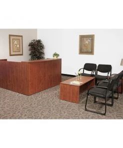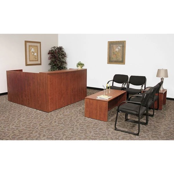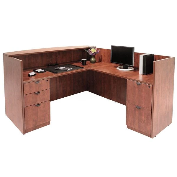 Reception Station, Legacy Series, Overall Width 71 In., Overall Height 42 In., Overall Depth 82 In., Number of Pedestals 2, Configuration (1) Box/Box/File, (1) File/File, Color Cherry, Material Commercial Grade Thermal Fused Melamine Laminate, 3MM Edge, Handle Metal Pull, Assembly Required, Standards Meets or Exceeds ANSI/BIFMA, Includes Internal Cord Grommets