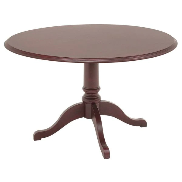 Conference Table, Stationary, Prestige Series, Shape Round, Width 42 in, Height 30 in, Diameter 42 in, Seats 4, Material Veneer with Solid wood Trim, Tabletop Finish Mahogany, Base Finish Mahogany, Top Thickness 1 in, Surface Material Wood Veneer, Frame Material Veneered Manufactured Wood, Weight Capacity 200 lb, Edge Type Beveled Wood, Base Type Slab End, Assembly Required, Standards ANSI/BIFMA