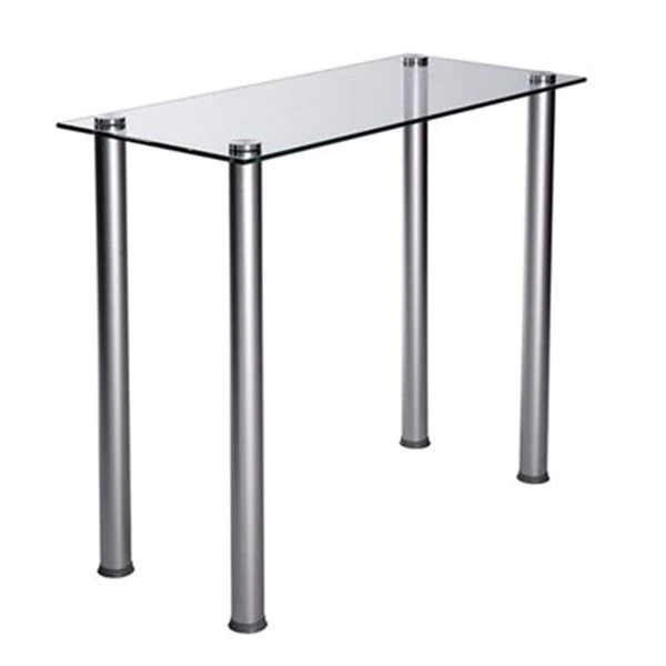 This is modern looking chic utility table is very versatile. Whether you are using it for components or as a laptop desk you can't go wrong with this unit. The CT-015 can be added to the CT-013 or can be used as a utility table for any of our other clear tempered glass desks.Features8 mm. clear Tempered glass.Can hold 99 lbs.Accessories not included.Easy assembly required.Finish – Glass and Aluminum.Dimensions – 35.5 W x 15.75 D x 29.5 H in.