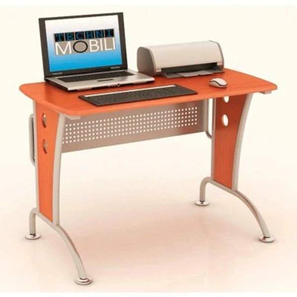 this modern techni mobili computer desk has a modern refined design with an ample writing and work space perfect for students. It features a matching mobile cpu caddy and a rear perforated metal modesty panel which provides visual privacy below the work surface and covers cabling. The spacious desktop has a 120 lbs weight capacity. The modern and refined desk is made of mdf panels in dark honey color with a moisture laminate veneer a top scratch-resistant powder-coated steel frame. Color: dark honey.