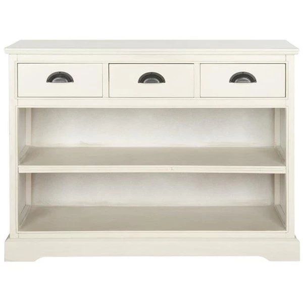 Form meets function in the vintage-look prudence bookshelf unit in pine with a shabby-chic white painted finish. Adapted from a louise philippe flea market find. this piece has three drawers with half-moon pulls and two shelves for books and curios. FeaturesPrudence bookshelfWood ContentPine plus mdf with wood veneerSpecificationsColor: WhiteShelf Size: 36.5" L x 15.75" DDimension: 30" H x 39.25" W x 13.75" DWeight: 49 lbs