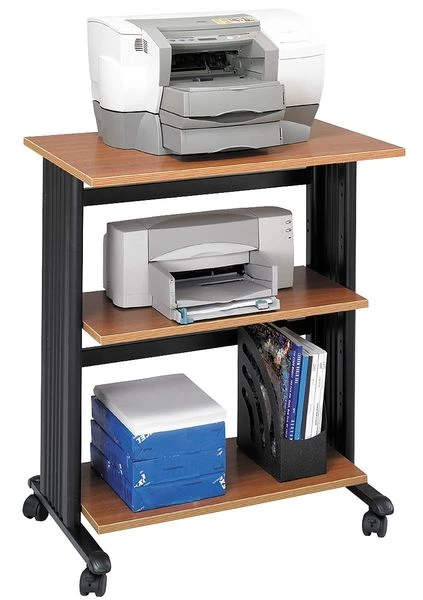Safco Adj Printer Stand, 3 Level, Med Oak/Blk