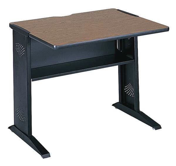 Computer Desk, Overall Width 36 in, Overall Height 30 in, Overall Depth 28 in, Number of Pedestals 0, Pedestal Location None, Number of Drawers 0, Keyboard Shelf No, Color Base Reversible Mahogany or Medium Oak, Color Top Melamine Laminate, Base Material Steel, Top Material Laminate, Assembly Required