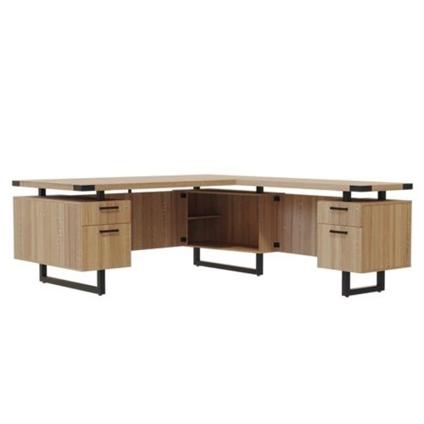 Chesterfield Leather Eco Styles 4-Shelf Corner Tower – Natural/Bamboo