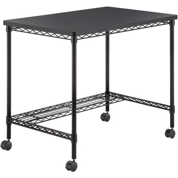 Be mobile at work when you need by using this mobile wire desk. It features a sturdy steel frame that makes it the perfect tool for on-the-go jobs. Durable wire desk was built to be both functional and adaptable. It is perfect for small office or home office settings. Made to last and impress. the wire desk features a black melamine top and black steel frame with powder-coat finish for durability. It comes complete with one sturdy. double-braced shelf for resting feet or light supplies and includes four swivel casters (two locking). Wire desk goes well with Safco Under-Desk Printer/Fax Stand and the Deskside Wire Machine Stand. FeaturesSturdy mobile tool for on-the-go jobsMove the dependable steel frame where you need itMobile on 4 swivel casters (2 locking)Double-braced shelf doubles as a foot restCompatible with Safco Under-Desk Printer/Fax Stand and the Deskside Wire Machine StandApplication & Usage:Office.HomeSpecificationsTable Top Width: 35.75"Base Included: YesNumber of Casters: 4Frame Color/Finish: Powder Coated BlackTop Color/Finish: Melamine.BlackFrame Material: SteelColor/Finish: Black