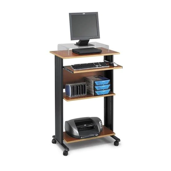 Safco is connected to a potentially great experience. We're on the job. making it easy to find the exact product solutions customers need and getting them shipped hassle free and on time. We're on the job. designing quality products that ensure comfort and organization. We're on the job creating positive experiences with our customers. Beyond their expectations in everything we do. we're on the job. From products to process. we want our customers to thrive in their 9 to 5! Product solutions that fit the needs of the individual and the way they work and processes that make it easy to do business with us. Whether it's creating a comforting. efficient work environment full of organizational solutions and comfortable seating or it's creating a comfortable working relationship in which we do business the way they prefer. we're committed to an ahhhhh inspired experience.Cherry 3/4" melamine laminate worksurface Decorative molded side panels hide computer cables for a clean appearance 45"H x 29-1/2"W x 22"D Durable powder-coated steel frame Keyboard shelves extend 9-3/4" and retract under the worksurface when not in use Keyboard Shelf: 24-3/4"W x 13-1/2"D Worksurface:31-1/2"W x 23-3/4"D Mobile on four casters two locking Ready to assemble