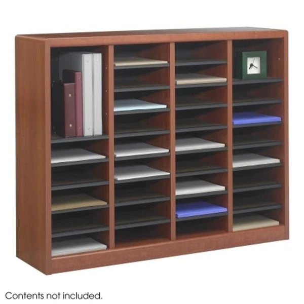 Safco is connected to a potentially great experience. We're on the job. making it easy to find the exact product solutions customers need and getting them shipped hassle free and on time. We're on the job. designing quality products that ensure comfort and organization. We're on the job creating positive experiences with our customers. Beyond their expectations in everything we do. we're on the job. From products to process. we want our customers to thrive in their 9 to 5! Product solutions that fit the needs of the individual and the way they work and processes that make it easy to do business with us. Whether it's creating a comforting. efficient work environment full of organizational solutions and comfortable seating or it's creating a comfortable working relationship in which we do business the way they prefer. we're committed to an ahhhhh inspired experience Almost too E-Z! Effortless organizing at your fingertips will be a great addition to any mail room. office. school. or store. Use compartments as a mailbox. material holder. or stationary sorter. Sturdy 3/4" furniture-grade compressed wood construction assures maximum strength and stability. Hardboard shelves form twenty-four letter-size compartments which hold up to 750 sheets. Individual compartment shelves remove to expand compartment size. Black plastic label holders complement finish. Quick and easy assembly with precision engineered cam-lock system. 40"w x 11 3/4"d x 32 1/2"h
