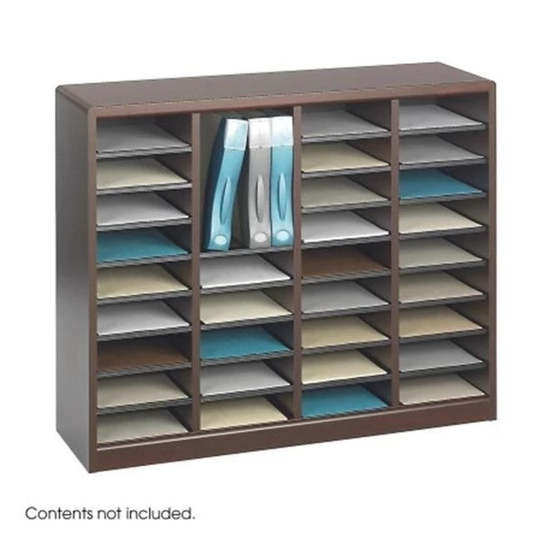 Safco is connected to a potentially great experience. We're on the job. making it easy to find the exact product solutions customers need and getting them shipped hassle free and on time. We're on the job. designing quality products that ensure comfort and organization. We're on the job creating positive experiences with our customers. Beyond their expectations in everything we do. we're on the job. From products to process. we want our customers to thrive in their 9 to 5! Product solutions that fit the needs of the individual and the way they work and processes that make it easy to do business with us. Whether it's creating a comforting. efficient work environment full of organizational solutions and comfortable seating or it's creating a comfortable working relationship in which we do business the way they prefer. we're committed to an ahhhhh inspired experience Almost too E-Z! Effortless organizing at your fingertips will be a great addition to any mailroom. office. school. or store. Use compartments as a mailbox. material holder. or stationary sorter. Sturdy 3/4" furniture-grade compressed wood construction assures maximum strength and stability. Hardboard shelves form twenty-four letter-size compartments which hold up to 750 sheets. Individual compartment shelves remove to expand compartment size. Black plastic label holders complement finish. Quick and easy assembly with precision engineered cam-lock system. 40"w x 11 3/4"d x 32 1/2"h