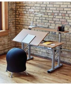 Split Level Drafting Table, Width 47 1/4 in, Depth 29 3/4 in, Height 29 1/2 in to 37 1/4 in, Base Color White, Base Material Steel, Tabletop Color Medium Oak, Tabletop Material Melamine, Tilting Deg. 50 Degrees , Assembly Required, Features Adjustable Table Height and Shelf
