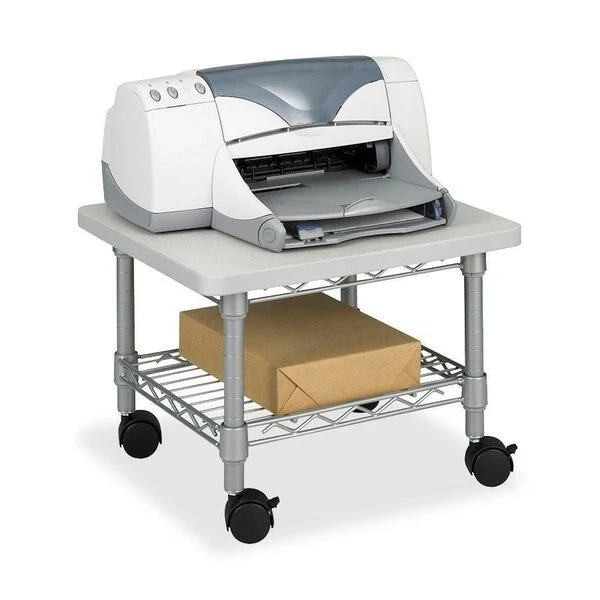 Underdesk printer/fax stand features a durable steel frame and laminate top. The 19" wide x 16" deep laminate top provides ample space for most printers and fax machines. Stand easily slides under a desk when not in use and holds 300 lb. The 15-1/2" wide x 14" deep sturdy steel wire shelf on the bottom holds 100 lb. and is ideal for storing extra paper or supplies. 17 lb. printer/fax stand rolls easily on four swivel casters (two locking).