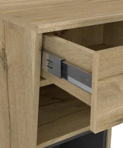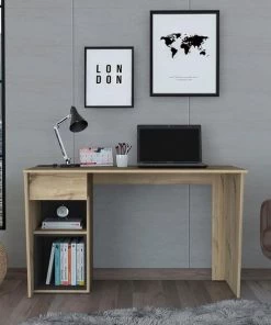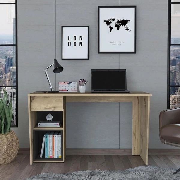 A unique design for unique people, the adds a rustic impression with modern flair to any home office. With a tabletop more than 47 inches long and a depth of 20-plus inches, there is ample room on which to work without feeling claustrophobic. Two open cubbies allow for quick access to notebooks and papers, and a smooth sliding drawer for added storage.