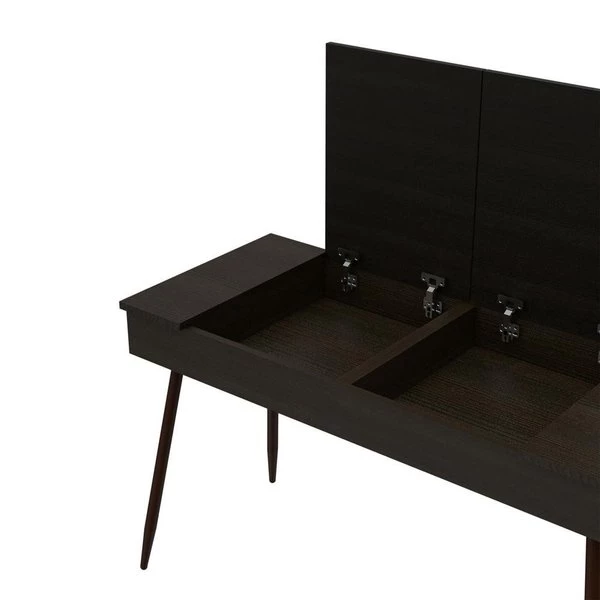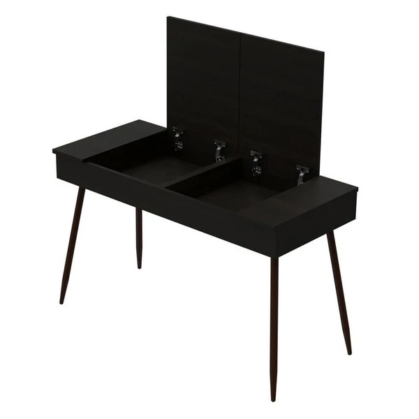 Create a space where you can focus, with an iconic modern desk complete with ample storage, for a fresh new look. Featuring two roomy compartments can hold your laptop, notebooks, and even your favorite paper crafts. Designed for a variety of environments, featuring an elevated shape utilizing contemporary, conical legs leaving an airy, uncluttered impression on any space.