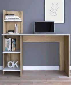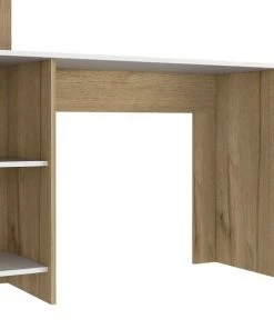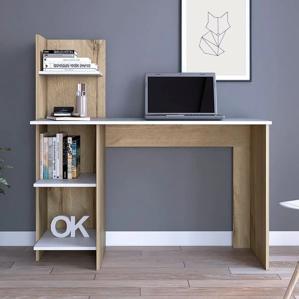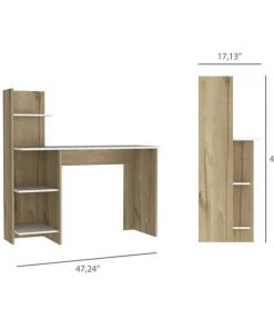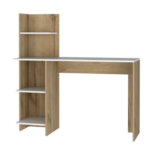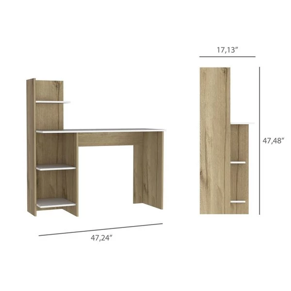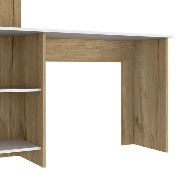 Make your workspace chic and stylish with this desk. The desk features two open shelves below the workspace, and a hutch with another shelf above. With an emphasis on functionality, this desk does it all and will make your to-do list go by with a breeze (while still turning heads)!