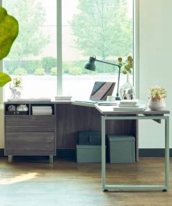 Streamline your office space with a contemporary desk featuring plenty of clean surfaces where you can get work done, plus more than enough storage space for various office supplies. Designed to be roomy, so you can be at your most productive without breaking the bank. Industrial legs reinforce the strength of this piece that is complete with two different sizes of sliding drawers.