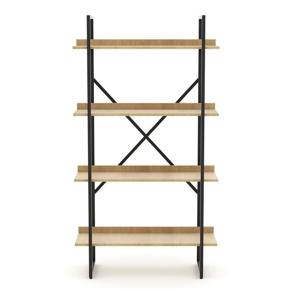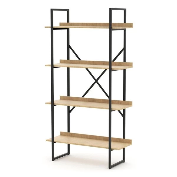 A stylish crosshatch bookshelf that is perfect for an industrial modern space but is just as at home in any contemporary household. This bookshelf sports four spacious shelves, ready to display your favorite plants, books and trinkets. Supported by a sturdy frame with diagonal supports on the back for additional storage with shelves made of a stylish laminate composite wood to add a touch of warmth to your space.