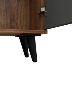 This charming contemporary bookcase has open shelving to show off some of your favorite items while also featuring concealed compartments for everything else. Clean horizontal lines and stylish conical legs give this piece a sleek elevated silhouette. Carefully designed with affordability, style, and creative storage solutions in mind.