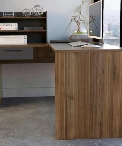 Build your space so you can make the most of your valuable time with a dynamic desk with contemporary flair. This piece is built with additional shelving storage for organizing your things or to show off some of your favorite awards or pictures. Strategically designed to integrate in a variety of spaces so you can worry about more serious things.