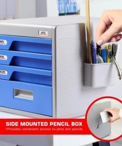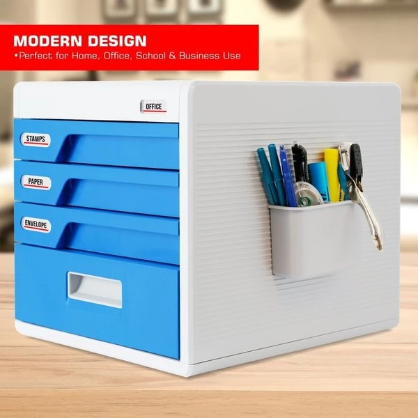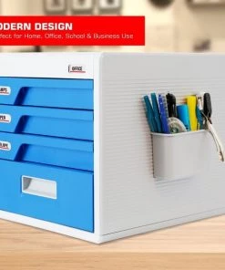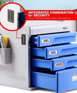 Features: – Convenient Workspace & Document Organization – Integrated Combination Lock for Security – User-Defined Number Pass Code Setting – Safe, Rugged & Reliable Construction – Anti-Scratch & Stain-Resistant Housing – Multi-Stacked 4-Drawer Tower Design – Removable Front Panel Labeling Tabs – Clean & Streamline Modern Style – Perfect for Home, Office, School & Business Use – Includes Side-Mountable Detachable Pen/Pencil Cup Technical Specs: – Construction Material: Reinforced Engineered ABS – Pass Code Type: Manual 4-Digit, Numerical – Universal Paper Compatibility: Fits up to Size A4, Letter Paper – Small Drawer Height: 2.0’’ (-Each Drawer) – Large Drawer Height: 3.9’’ (-Single Drawer) – Total Cabinet Dimensions (L x W x H): 15.0’’ x 11.8’’ x 12.6’’