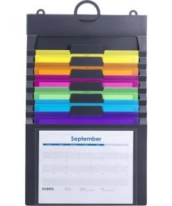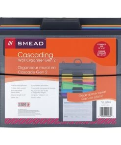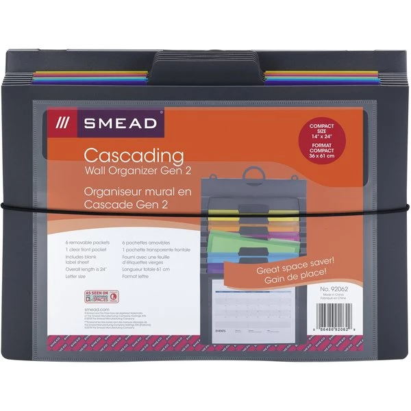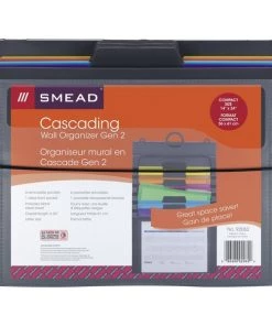 Cascading Wall Organizer Gen 2 hangs on the wall to reduce desktop clutter. Colored polypropylene, letter-size pockets can be removed to take to a meeting, and hold 50 sheets each. Front clear pocket works well for a calendar or project milestones. Easy to keep level with 3-part hanger. Sturdy frame and compact size of 24" tall. Free up space on your desk, or tidy up your family's home command center with the Cascading Wall Organizer Gen 2 from Smead.