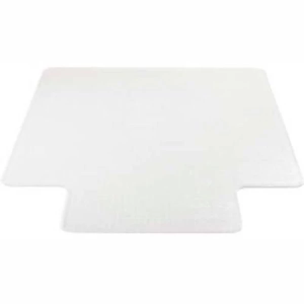 Lorell plushmat office chair mat with lip, 53"l x 45"w, 0.13" thick, clear, beveled edge 45" wide x 53" deep clear rectangular office chair mat will extend the life of your carpet by spreading out the pressure from your chair casters. Will also reduce fatigue by allowing easier rolling across your workspace with less back and leg strain. Designed for use on medium plush 1/2" thick or less carpets including padding. provides a studded back designed to achieve a strong grip without piercing or damaging your carpet backing, beveled edge for smoother rolling on and off your mat, and a 25" wide x 12" deep lip to cover the carpet under your desk when your chair is pushed all the way in. Crystal clear office chair mat lets the beauty of your carpeting show through and is made of heavy-duty material to stand up to years of daily wear and tear. features heavy duty construction smooth edge greenguard gold certified for low chemical emissions to ul 2818