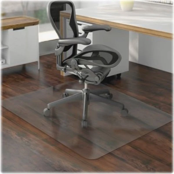 Lorell hard floor office chair mat, 60"l x 46"w, clear office chair mat is designed for hard floors including wood, vinyl and tile. Design features vinyl construction and a straight edge. Office chair mat protects floors from chair scuffs and caster damage. features: nonstudded, protective vinyl to safeguard uncarpeted floors for anytime use on wood, tile, laminate and other hard floor surfaces easy-glide rolling surface for effortless chair movement free and clear formula for a healthy work environment greenguard gold certified for low chemical emissions to ul 2818