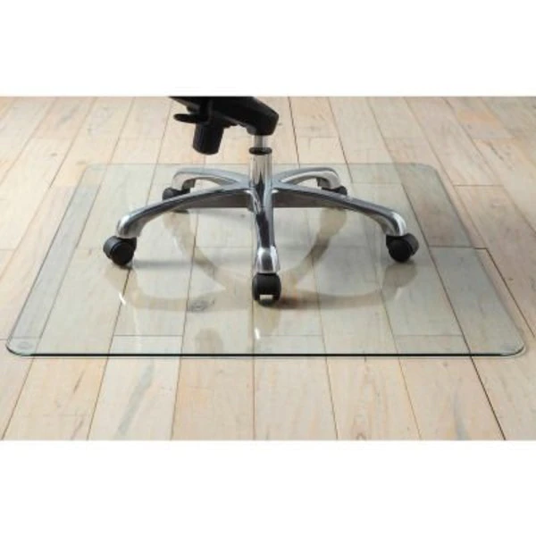 Lorell tempered glass chair mat for hard floors and carpets – 50"l x 44"w tempered glass chairmat features a scratch-resistant design to protect your flooring while offering a smooth surface for your chair. Its durable material safely supports up to 1,000 lb. Easy-to-clean material wipes down quickly for simple upkeep. Chairmat is designed for any floor type including high-pile or low-pile carpet, hardwood, marble and more.