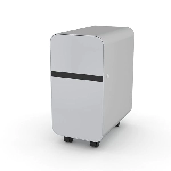 Introducing the “Wally” mobile storage pedestal cabinet from SKUTCHI Designs Inc. The latest in our Sapphire Cubicle System product line of storage and locking file cabinet accessories.This latest cabinet offers a bevy of features. They include its lightweight, yet extremely durable metal construction. Its unique rounded-edge top corners and non-porous metallic surface makes dusting, cleaning, and disinfecting a breeze. The custom key and lock mechanism secures both the top and bottom drawer. Also, mounted to the bottom of this mobile storage pedestal cabinet, are caster wheels which can lock into place to immobilize the unit. The bottom file drawer is capable of both letter and legal size files. 19.5"x12.18'x20.12 "Wally" Mobile Storage Pedestal Steel Filing Cabinet on Casters in Non-pourus Light Gray Finish