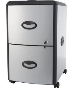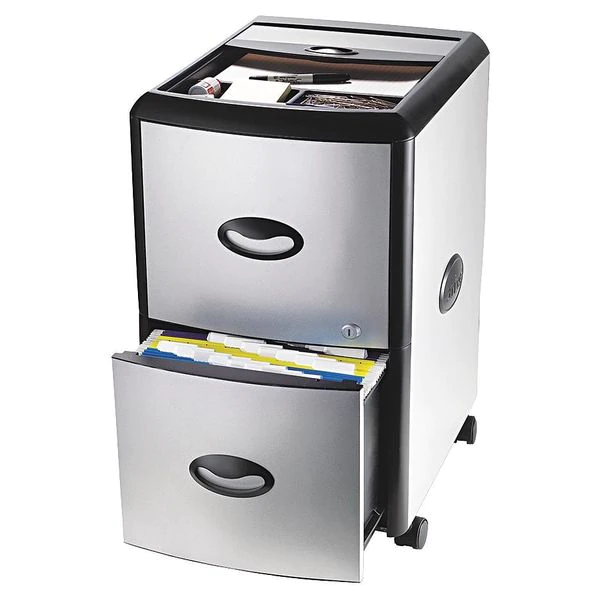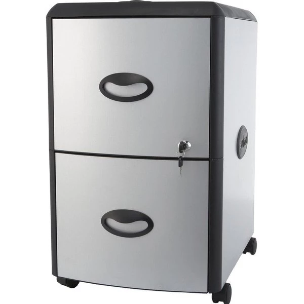 Mobile Filing Cabinet, Locking, File Size Letter, Overall Width (In.) 19 in, Overall Width 19 in, Overall Depth (In.) 15 in, Overall Height (In.) 23 in, Overall Depth 15 in, Overall Height 23 in, Construction Plastic/Steel, Color Black/Silver, Finish Plastic/Steel, Includes (4) 1 1/2 in Plastic Casters and File