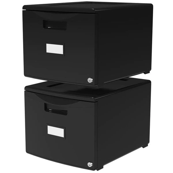 1-Drawer Mini File Cabinet with Lock for Legal-Letter Functional and lightweight. the Filing Drawer is the perfect storage solution for those in need of professional and affordable filing. The durable polypropylene construction allows this cabinet to be stackable as well as moisture and rust resistant. FeaturesTop can support the weight of a standard home/office printerWon't scratch. rust or dentLockable drawer 2 keys includedStacks securely to create a vertical file cabinet of up to 6 drawers highBuilt in label holderPack of 2SpecificationsColor: BlackMaterial: PlasticWeight: 9 lbs