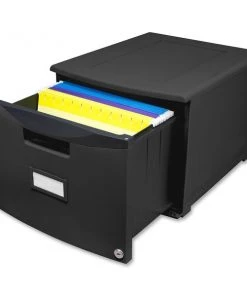 Storex 61265B02C 1-Drawer Mini File Cabinet with Lock for Legal-Letter; Black – Pack of 2