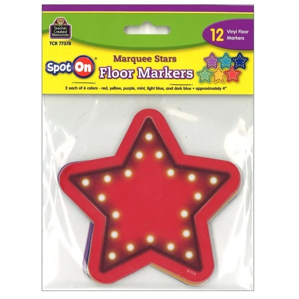 Spot On® Vinyl Floor Markers help students quickly identify where to sit or stand. These floor markers stay on strong but can be removed easily and used again and again. The write-on/wipe-off surface is perfect for writing student names or numbers. The vinyl markers attach firmly to vinyl, wood, smooth tile, gym floors or other smooth surfaces. Measures 4" diameter. Each pack includes 12, 2 each of 6 colors.