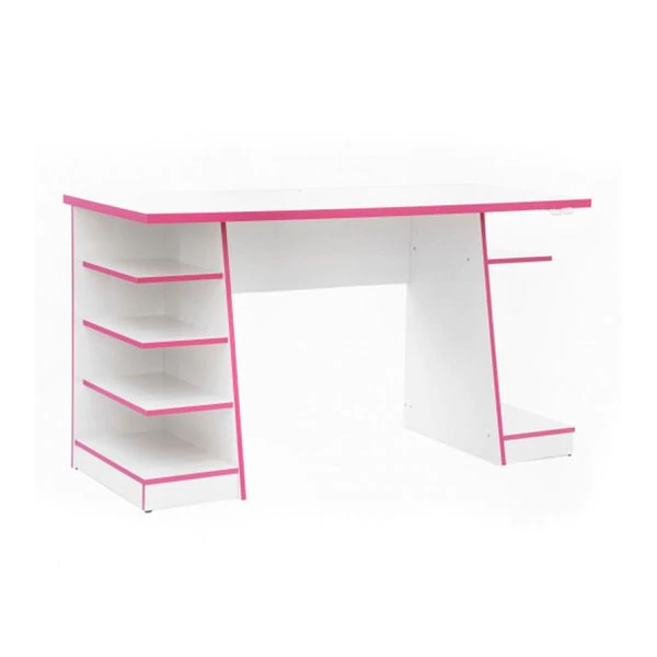 The Jango Gaming desk is an absolute must-have for those of us who like to play hard. This desk has a very generous surface with plenty of storage options. You can use the 4 left side shelves plus 1 top right side shelf to keep your gaming or home-office essentials within reach. It comes equipped with a CPU bottom shelf. and even a headphone holder – keeping it close to you for your next gaming session. Upgrade your gaming setup and level up your workspace with our Jango computer gaming desk. FeaturesPainted surface with particle board constructionHeadphone holderSpecificationsColor: WhiteMaterial: Particle BoardDimension: 53.3 x 22.5 x 29.5 in.Country of Origin: BrazilWeight: 72 lbs