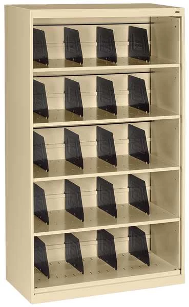 File Cabinet, File Cabinet Type Lateral, Series Open Style Fixed Shelf Lateral File, File Size Legal/Letter, Number of Drawers 0, Number of Doors 0, Overall Width 36 in, Overall Height 63 1/2 in, Overall Depth 17 in, Finish Painted, Color Champ/Putty, Material Steel, Label Holder Included No, Lock Included No, Assembled, Includes Fixed Shelf