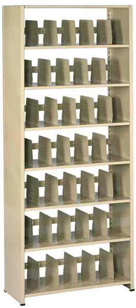 - Includes: (16) Shelf Supports, (2) L Uprights, (35) Adjustable Dividers, (7) Backstops, (8) Shelves