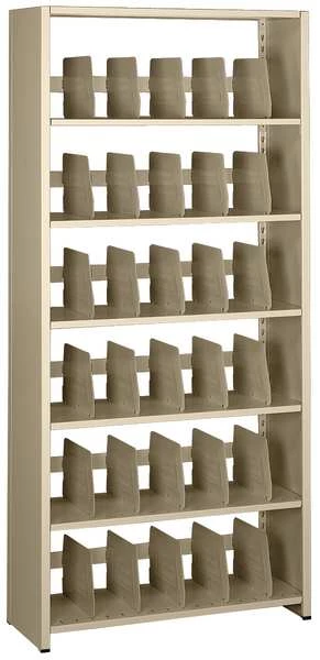 - Includes: (16) Shelf Supports, (2) L Uprights, (35) Adjustable Dividers, (7) Backstops, (8) Shelves