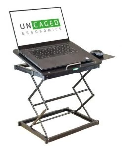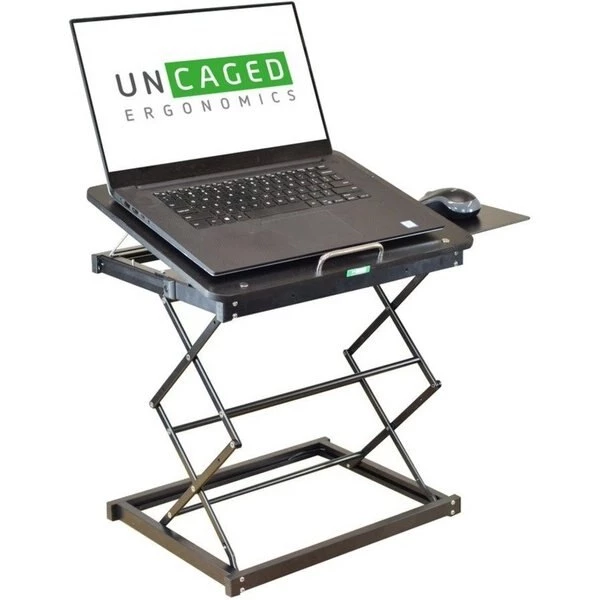 CD4 is engineered to be the best ergonomic laptop stand and standing desk converter for people who work directly on a laptop with or without an external mouse. This adjustable height and tilt laptop stand perfectly positions laptops to help optimize your posture when sitting plus it converts any desk to standing. Sit, stand, move and improve your posture with this truly ergonomic desk riser and standing desk converter for laptops. ADJUSTABLE LAPTOP DESK STAND for SITTING: Use the CD4 adjustable laptop desk stand to work more comfortably and with better posture when sitting at a desk. The CD4 Ergonomic Laptop Desk Stand is easy to adjust. Tilt screens to reduce glare and eye-strain. Raise/lower laptops to optimize your typing posture. Lightweight, compact design with simple adjustments make CD4 the best ergonomic laptop desk stand. LAPTOP STANDING DESK CONVERTER: Convert any desk to standing with the sleek, compact CD4 laptop standing desk. Designed specifically for typing on a laptop, CD4 quickly raises laptops to a comfortable standing height (up to 18.6” above your desk). The tilting panel reduces glare and provides additional height adjustment. ERGONOMIC LAPTOP STAND + STANDING DESK for LAPTOPS: The CD4 sit stand up desk converter for laptops rests on your desk, requiring no installation. The mouse pad is always level and quickly connects to the right or left side. The CD4 Ergonomic Laptop Stand lets you to turn any desk into a standing desk without forcing you to stand all day. Weighing less than 7 pounds, you can easily move it from one place to another. You’ve found a convenient, ergonomic stand that helps you reap the benefits of a standing desk. SPECS: * Height Range: 2.6-18.6” [4 positions: 2.6, 8.75, 15.25, 18.6”] * Panel Tilt: 0, 16, 25 degrees * Weight: 6.7 lbs * Panel Size: 12.25×16.25”