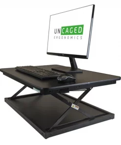 A fast, compact and affordable standing desk converter with a simple height adjustment, lightweight design and compact footprint. CHANGEdesk MINI is the perfect standing desk riser for laptops and single desktop monitors. It rests on top of any desk, requires no installation and arrives completely assembled. Place CHANGEdesk Mini on your desk and quickly enjoy the freedom to work sitting or standing. THE PERFECT LAPTOP STANDING DESK CONVERTER: 27.5×19.5” top panel offers plenty of room to hold your laptop and work essentials. CHANGEdesk Mini collapses almost flat – holding laptops just 3” above your desk – which allows for comfortable typing directly on your laptop. Four height settings let you raise laptops to a comfortable standing height. Moving from sitting-to-standing is fast, convenient and effortless thanks to the spring-assisted lifting mechanism. SIMPLE STAND UP DESK CONVERTER for DESKTOP COMPUTERS: You've found the ideal adjustable-height riser for your desktop computer! There's plenty of room on the top panel to hold your monitor + keyboard + mouse + work essentials. The single point of adjustment lets your quickly raise and lower your computer to the perfect height for you! CHANGEdesk MINI is optimized for use with single monitors providing a quick, simple, affordable adjustable platform that lets you work sitting or standing. PRODUCT SPECS – Height Range: 4 positions from 3-14” (3, 6, 10, 14”) – Top Panel Size: 27.5×19.5” – Product Weight: 21lbs – Max Load: 20lbs HOW TO ADJUST CHANGEdesk MINI? 1. Grasp both sides of the top panel 2. Squeeze the lever on the right side to release the lock 3. Raise/Lower CHANGEdesk Mini to your desired height and release the lever to lock it in place Convert any desk to standing with this affordable, portable standing desk converter. Quickly move between sitting and standing with this affordable stand up desk converter for laptops, macbooks and single monitor desktop computers.