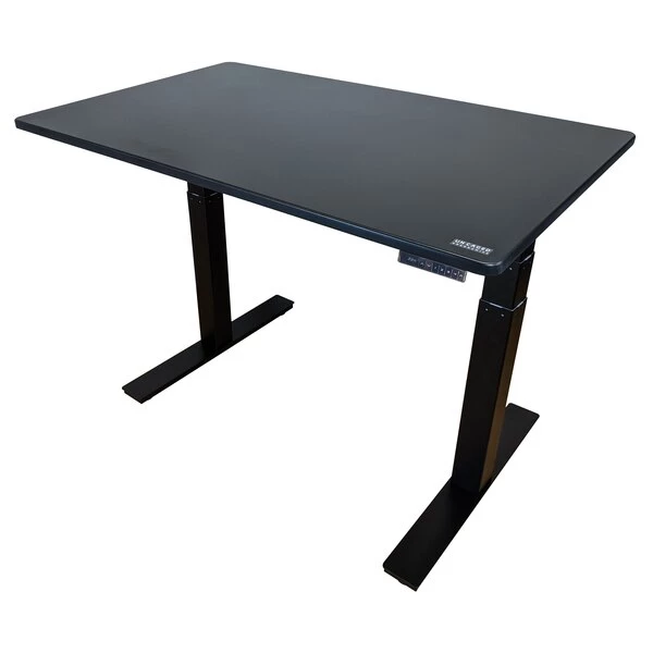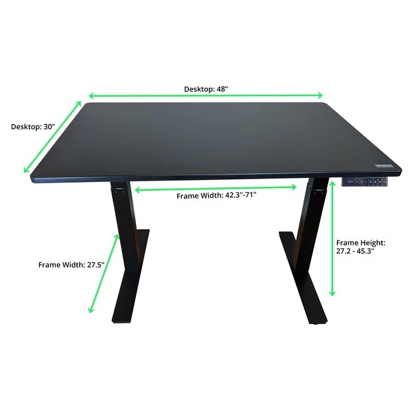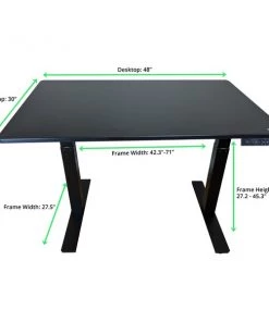 A premium dual-motor electric standing desk featuring a beautiful 48×30" black desktop. Upgrade your desk today and enjoy the freedom to glide smoothly between sitting and standing throughout the workday. With a decade of manufacturing experience, we build every standing desk frame with extreme attention to detail. Precision craftsmanship translates to better durability and longevity. The premium steel standing desk base is topped with a beautiful scratch- and stain-resistant 48×30" black desktop that's designed to fit the decor of most offices and deliver exceptional value to customers. FRAME FEATURES: * Dual Motors with premium motor technology and longevity * Memory – store 4 height for 1-touch adjusting * Adjustable Width – set the standing desk width that's most convenient for your space * Anti-Collision Technology – helps prevent accidentally lowering the desk on an object DESKTOP FEATURES: * 48×30", Black MDF * Scratch- and Stain-Resistant (wipes clean) You've found the best affordable electric standing desk at an unbeatable price. Get a new standing desk today and enjoy the ability to quickly change your desk height with the push of a button.